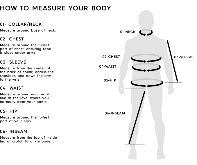 | SIZE | CHEST (cm) | SLEEVE (cm) | NECK (cm) |